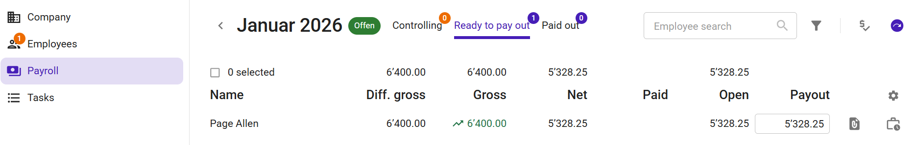 Now create in 6 steps a Swiss company and an employee. Ason calculates the payroll automatically.